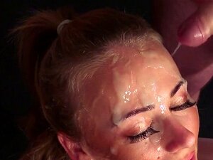 Uvanlig utseende får cumshot i ansiktet mens hun svelger alt. Feilfri bombe gir en blowjob før flere cumshots får ansiktet sprutet med klissete krem