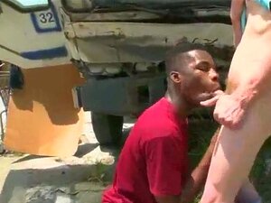Stor svart kuk sugd av en stor kuk, Høy svart bølle betalt for å suge og knulle en stor kuk utendørs
